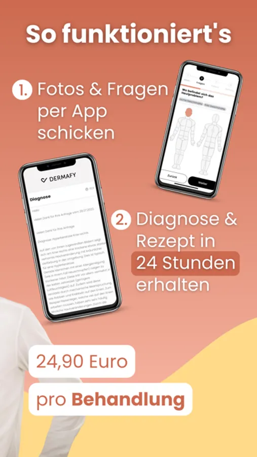 We are available 24/7 for you: Do you have a skin problem or a noticeable mole? We are here for you! Our dermatologists are ready to assist you within a few hours, conveniently through our app from the comfort of your home. Receive a diagnosis for your skin condition and an individualized treatment plan tailored to you within just a few hours. If necessary, the private prescription will be sent directly to your home.