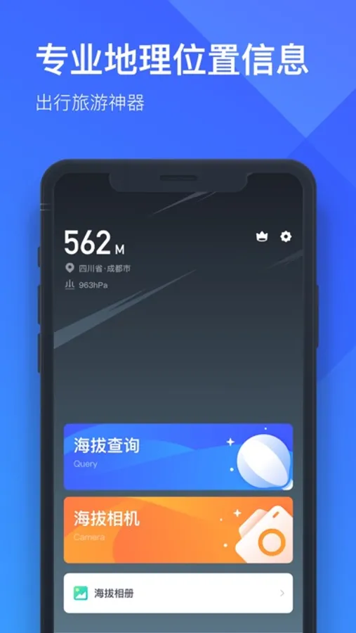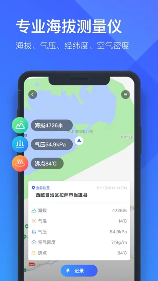 海拔测量仪是一款面向户外爱好者的GPS实时海拔测量应用,特色功能:
