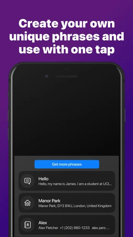 Our Chat Maker will make your life easier by providing already prepared for you phrases. Type with one taps.