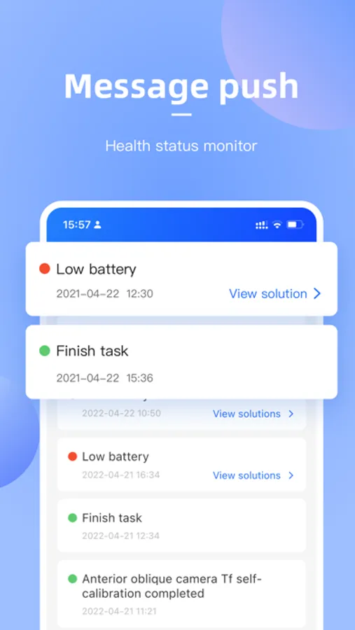 When the robot triggers a health warning and generates a task report, it will push messages to the app in real time through the cloud. Users can view the messages of all robots under their name in real time, and learn the robot abnormalities at the first time.