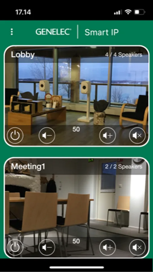 The app enables control of zones of loudspeakers. You can see if audio is playing, adjust volume and mute the zone. You can turn zones on and off for convenience. The zone control is easy and visual, with ability to bring in photos of the zones for easy recognition of the correct zone. The app works on standard WLAN and allows wireless management of all zones on the LAN from anywhere in the area of the WLAN coverage.