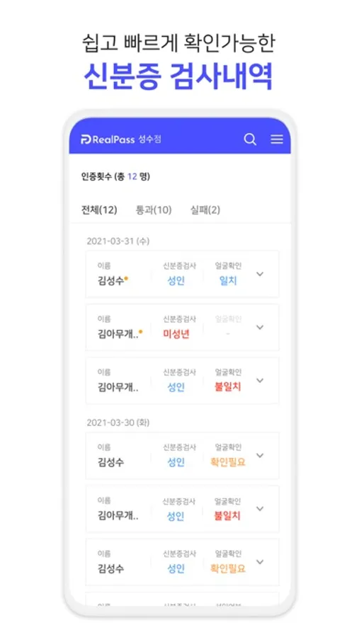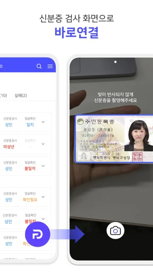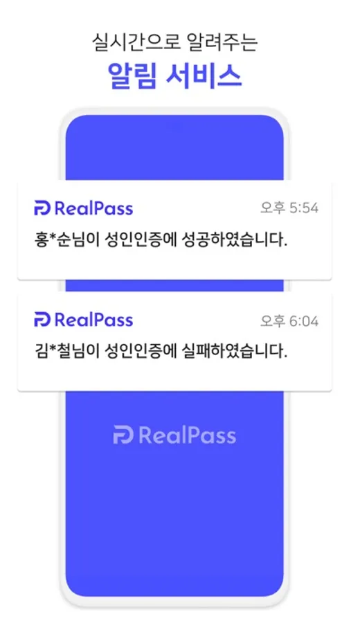 신분증 검사 후 결과를 실시간 알람을 통해 확인하실 수 있으며,