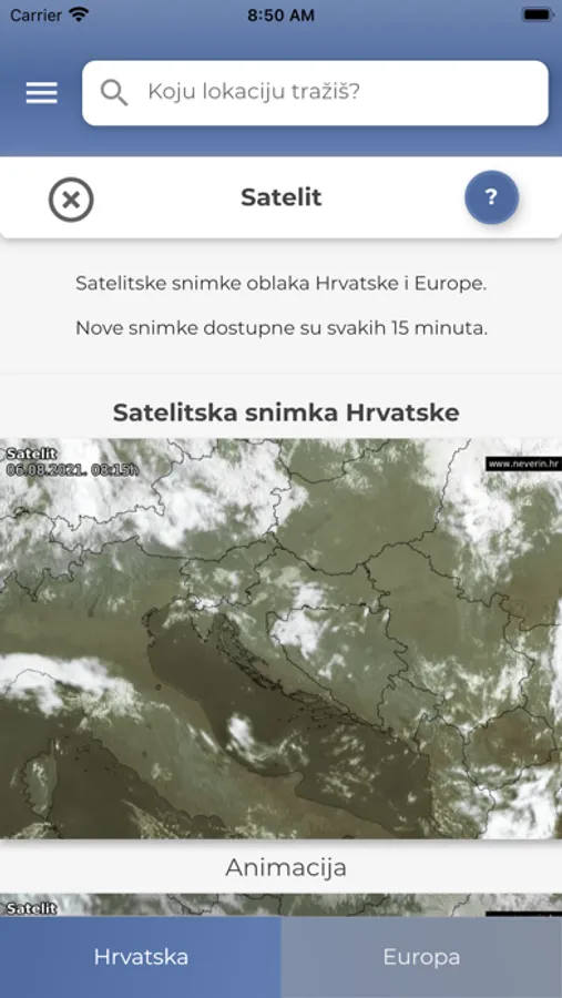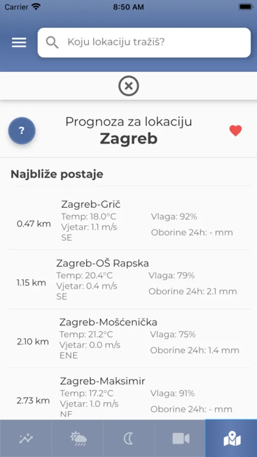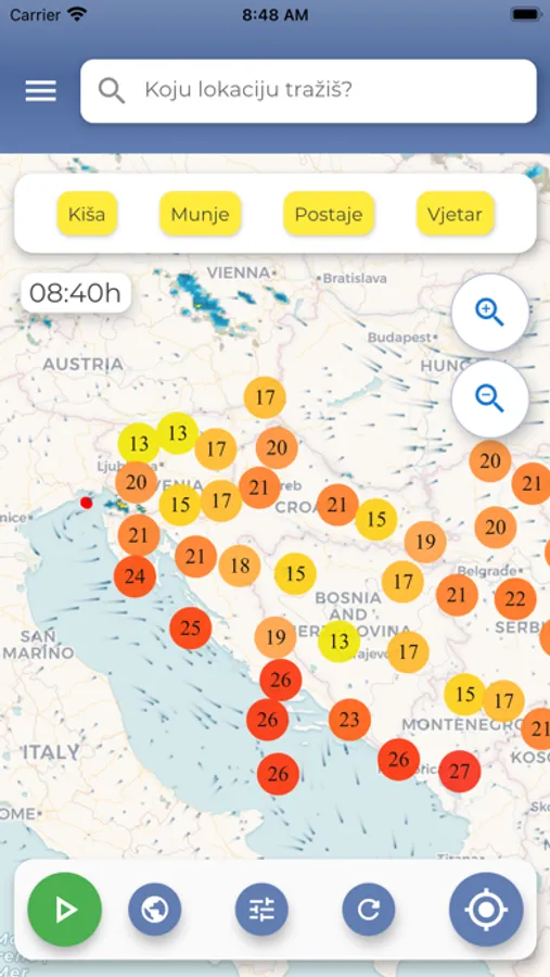 • interaktivnu mapu (oborine, munje, postaje, vjetar)
