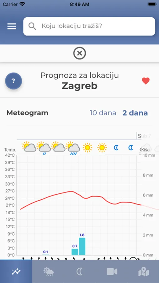 • 10-dnevnu prognozu vremena za više od 10 000 lokacija