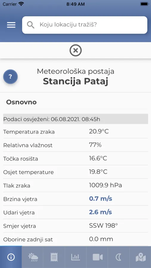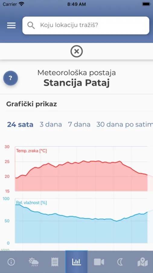 • detaljne podatke s meteoroloških postaja, statistiku i grafički prikaz