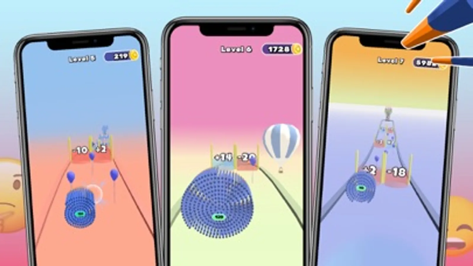 Armed with your Dart Gun, it is time to shoot them through the best gates, multiply them to crazy Dart Army numbers and crash everything and everyone in your path!