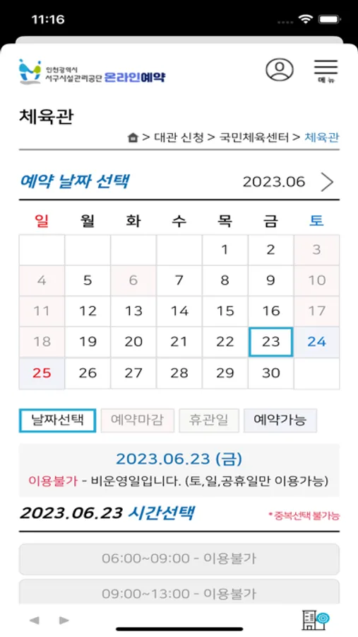 인천서구시설관리공단 온라인예약 서비스입니다.