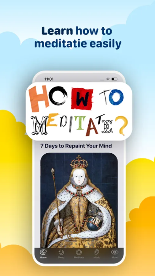 Guided meditations on subjects like focus, self-love, sleep, addiction, anxiety, stress