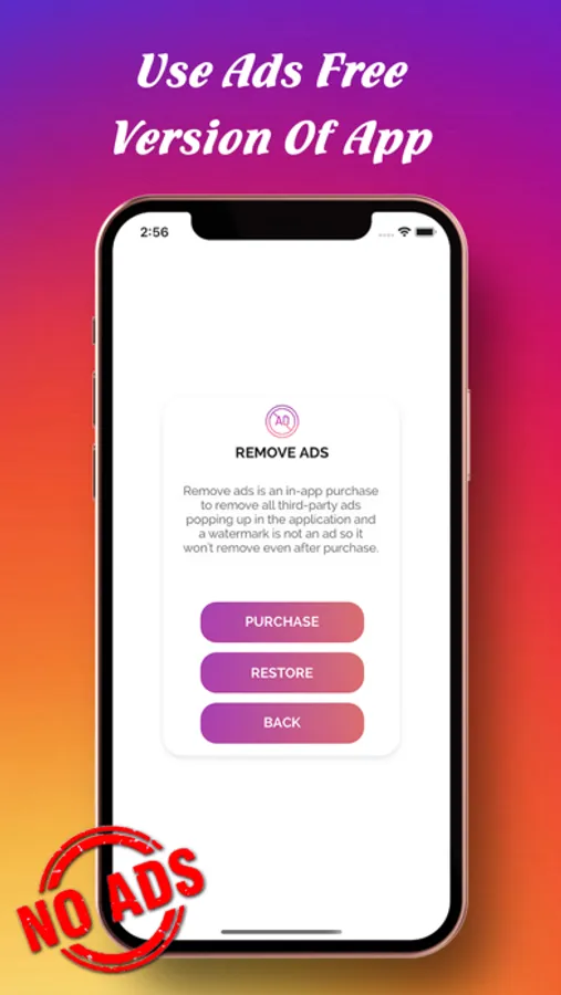 * Remove ads is an in-app purchase to remove all third-party ads popping up in the application and a watermark is not an ad so it won't remove even after purchase.