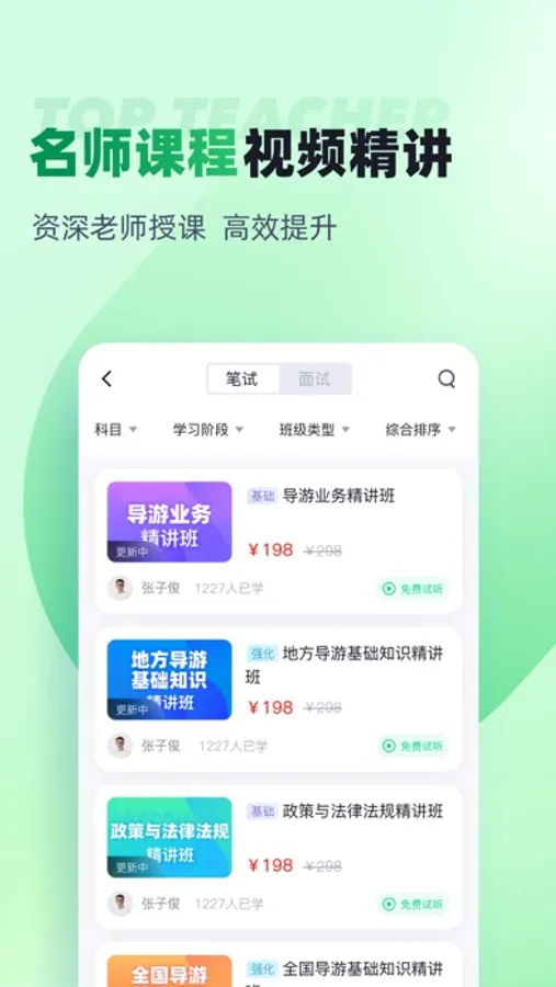 导游资格证APP新增精讲班课程,资深老师授课,备考轻松高效