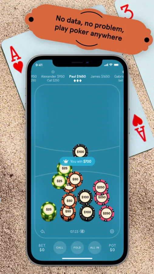Play poker face to face with a physical deck of cards and use Rocket Chips as a set of accompanying digital chips.