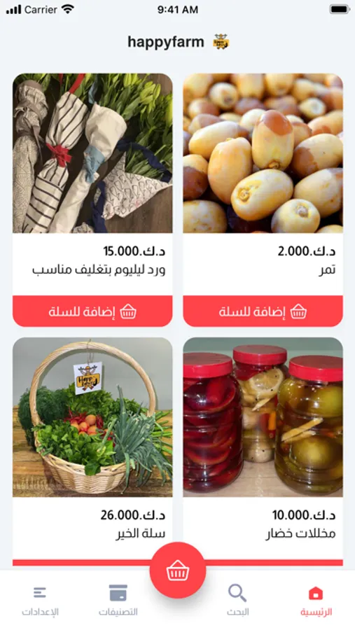 The Happy Farm application for selling natural products directly from the farm provides safe electronic payment methods and shipping to all areas of Kuwait