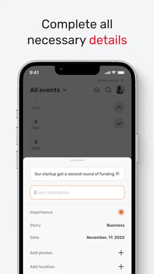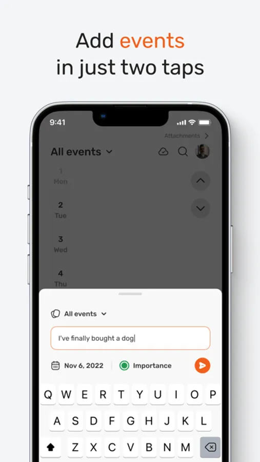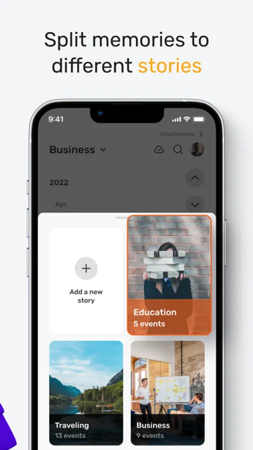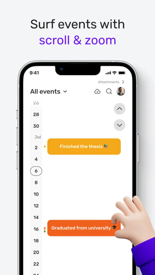 Lifely provides the ability to quickly look back and navigate events and dates. This is achieved by zoom and scroll capabilities. With just a few gestures you can easily time hop to any period of life. There is an ability to track events both in a general timeline or any other stories you've created (for example, business, travel, family etc.).