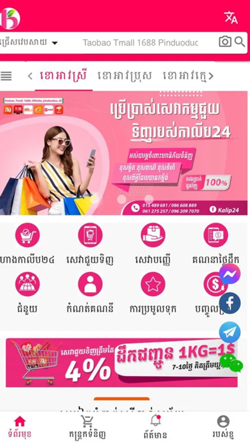 We are an E-commerce website which is connected to serveral Chinese Giant E-commerce website like Taobao, Tmall, 1688,JD,Pinduoduo, Alibaba, Aliexpress, etc. Through this website, we help Cambodian people to buy cheap things from China directly, help them check and inspect the quantity and quality of all products prior to shipment,help them doing international shipment and custom clearance, deliver door-to-door, plus we help them improve their bussiness by guiding how to use the social media more effectively for marketing.