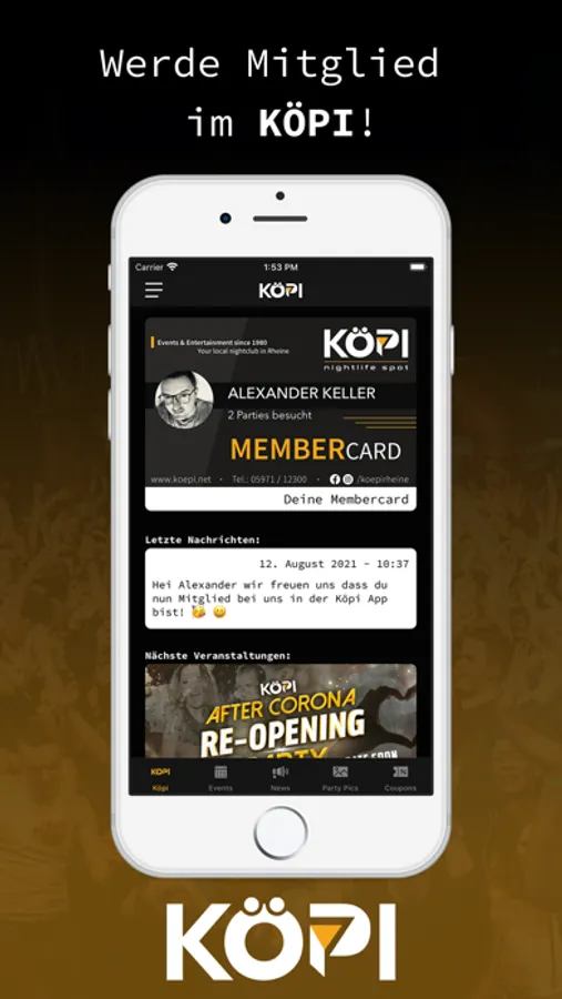 Lade dir die Köpi-App und profitiere mit der kostenlosen Mitgliedschaft.
