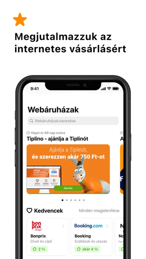 Hogyan működik? A webáruházak jutalékot fizetnek a Tiplinónak az új vásárlókért, a Tiplino pedig ennek egy részét jóváírja az ön számlájára. Ennek köszönhetően visszaszerezheti a vásárlása során elköltött összeg egy részét. Az alkalmazás teljesen ingyenes, a használatáért nem fizet egy forintot sem.