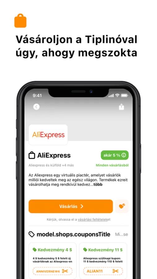 Az alkalmazásban talál információkat az aktuális kedvezményekről, illetve kedvezményes kuponokról és kódokról is, amelyek segítségével még több pénzt spórolhat a vásárlásai során.
