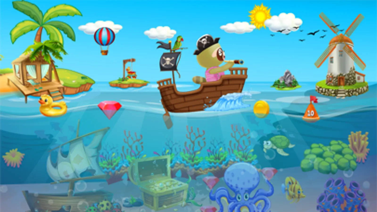 Sea Adventure, It's time to explore the deep-down ocean. Dive into the water to start exploring the sea, where your toddler will find marine animals, shells, and much more! There are so many things in the water that are worth exploring! Jump into your favorite boat to start and reach the destination. Drive your ship wisely to save the ship from crashing. What is deep down in the ocean, there are aquatic animals, fishes, and a whale shark! Improve your little ones' ability of recognizing shapes and satisfy their sense of accomplishment with this fun and pretend play boat adventure game. This fantastic and toddler boat game is specially designed for little boys & girls who love to play boat and ship racing games. As a pirate ship driver perform stunts to slide and float their way through water tides.