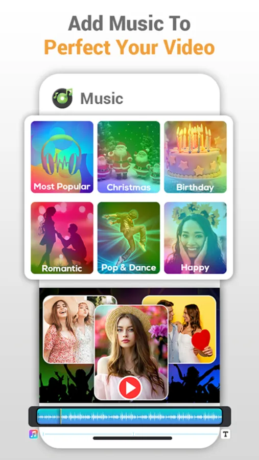 Make an amazing slideshow video just pick your unlimited photos with a lots of music and beautiful transitions. To your video from photos you can add an inscription, adjust the text size, font, color, transparency, position, start and end time of the display of the inscription.