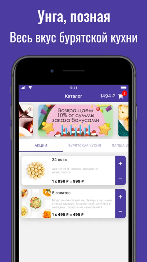 Вы можете заказать бизнес-ланч на обед, на компанию. Бесплатная доставка более 50 блюд бурятской, европейской и паназиатской кухни.