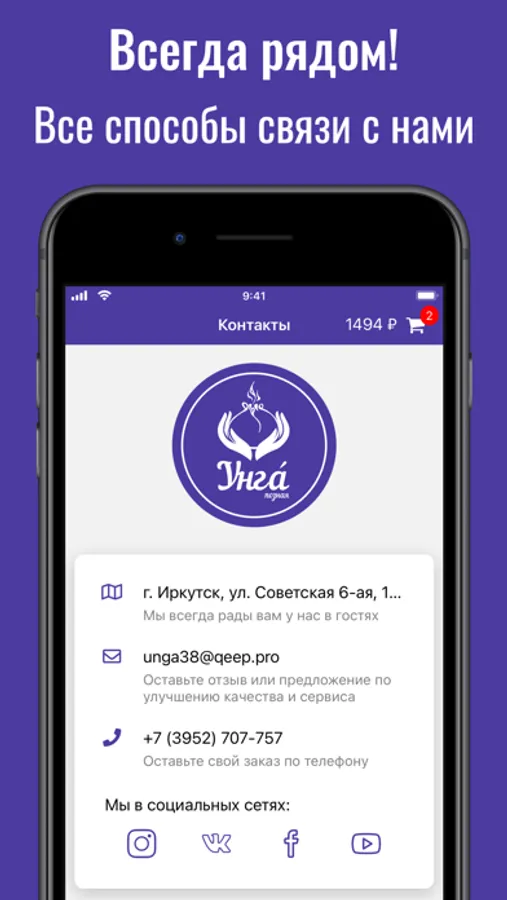 Мобильное приложение Унга создано для того, чтобы вы могли легко и удобно заказать еду на дом или в офис.