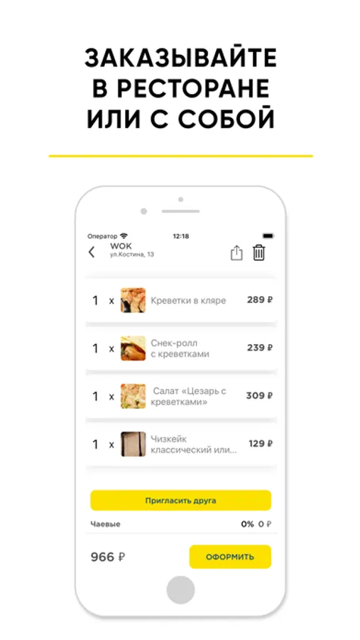 Попробуйте невероятные сочетания вкусов в нашем меню. Закажите вок с доставкой к ужину домой, к обеду в офис или заберите сами. Укажите в приложении время визита, и мы подготовим всё «с собой» точно к этому моменту.