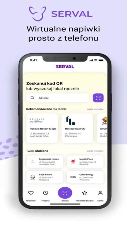 wybrać lokal poprzez zeskanowanie kodu QR lub wyszukanie go w wyszukiwarce,