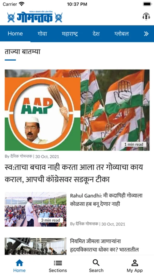 The Dainik Gomantak app offers everything from breaking news, live updates, trending videos, photos and in-depth coverage of topics under sports, technology, general news in Marathi. Through the app, you will receive non-stop updates on important events such as elections, sporting events and natural calamities.
