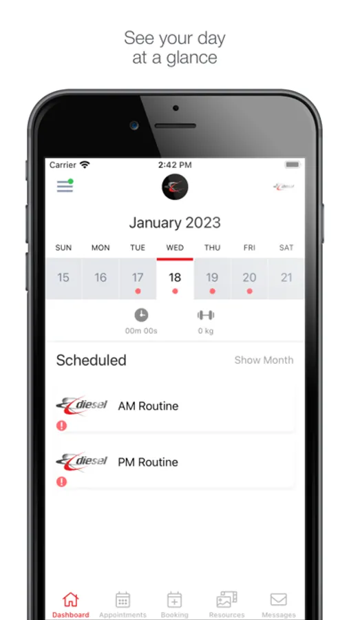 Log your Diesel workouts from anywhere with the Diesel workout logging app! View your logged workouts, see upcoming scheduled workouts, and book appointments inside the app. Track your progress and get the most out of your Diesel workouts!