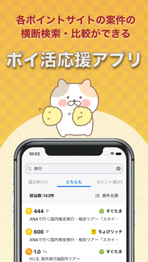 ●約30種のポイントサイトの案件を横断検索・横断比較することができるポイ活応援アプリです。
