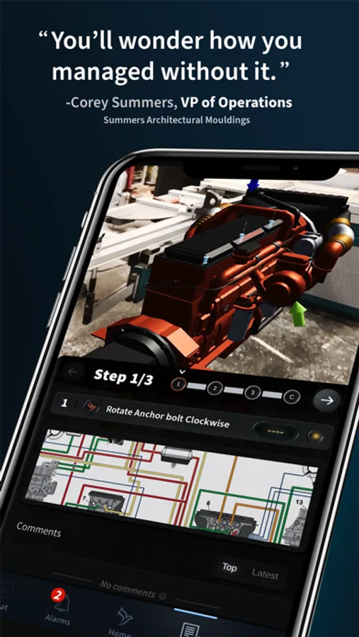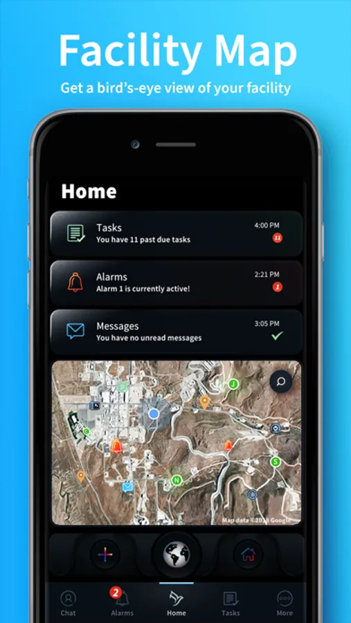 - Quickly find alarms and calls-to-action using AR navigation and the aerial map.
