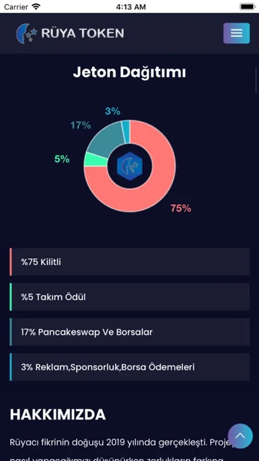 Rüyacı uygulamasında kullanılması planlanan ve kripto borsalarında da işlem görmesi hedeflenen Rüyacının kripto parasıdır. CoinmarketCap sıralamasındaki dünyanın en büyük 200 borsasının içinden 5 büyük borsada listelenmesini planlamaktayız. Ayrıca Rüya Token BEP-20 ağında üretilmiştir. Toplam Arzı 100.000.000 Adettir. %75'i 10 yıllığına Kilitlidir. %20'si ise ön satışta satılacaktır. %5'i ise takıma ve ödüllere ayrılmıştır.