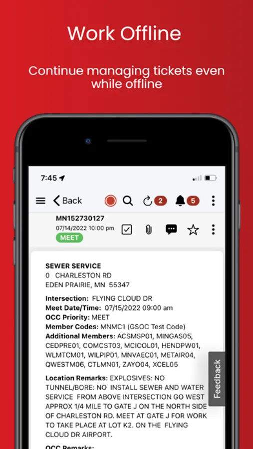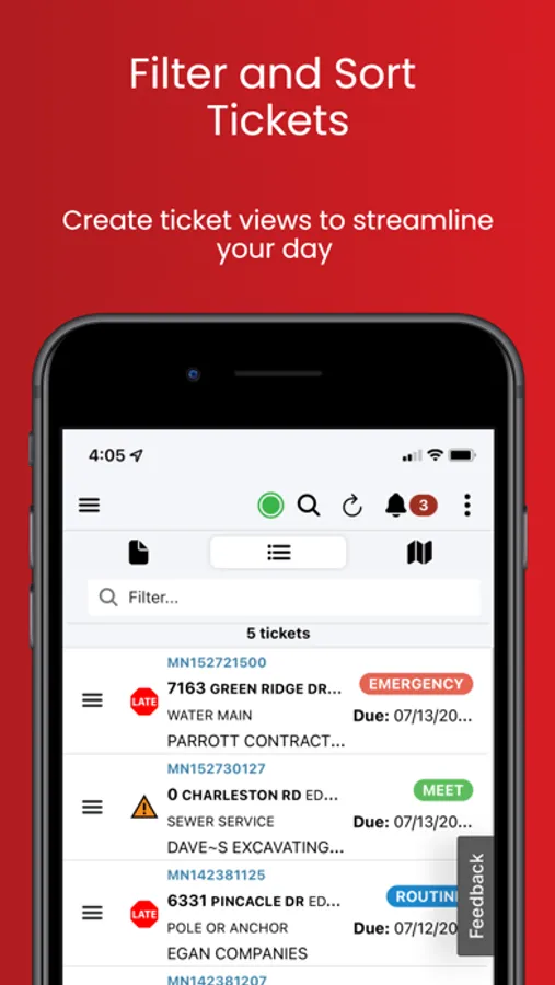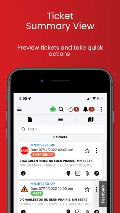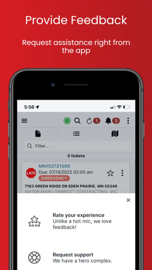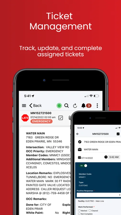 Locators can easily plan their day around the type and location of tickets, take and upload photos directly in the app without sacrificing device storage space, and utilize click-to-call or click-to-email capabilities that provide streamlined communication with ticket owners and contractors. Offline capabilities allow users with spotty or no connection to continue viewing, managing, and completing tickets.
