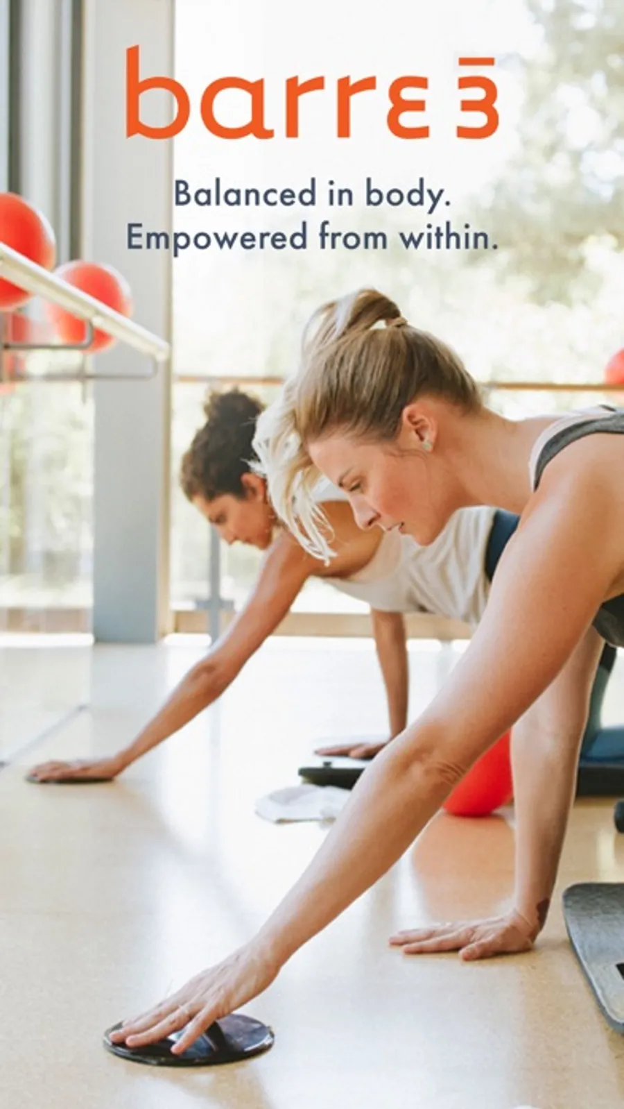 Already a member of your local barre3 community? Download the app and set your local studio as your home studio. Each time you log in afterward, you'll be directed to your class schedule, special offers, and more from your local studio.