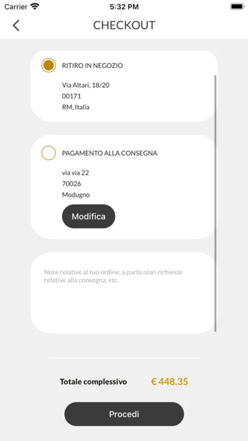 Nel caso in cui alcuni prodotti non fossero disponibili, potrai decidere di recedere l’ordine o di confermarlo con i soli prodotti presenti in negozio.