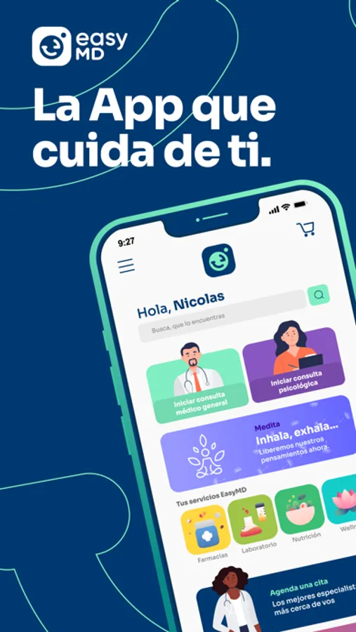 EasyMD es la App que cuida de ti y la mejor opción para cuidar de tu salud física y también mental mientras estás en casa, trabajando o descansansando. Un estilo de vida que nunca te ha dado tantas posibilidades para cuidarte mejor. Si te suscribes a un plan EasyMD podrás acceder a descuentos exclusivos e ilimitados, donde quieras y cuando quieras.