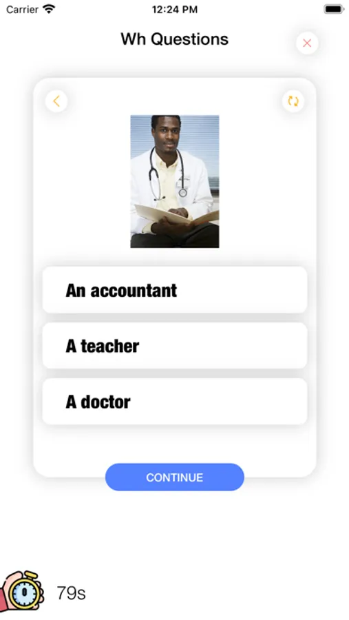 -Wh questions: Answer various Wh questions (who, what, where, when, and why), front side asks a question, back side gives a photo cue and multiple choice with one correct answer
