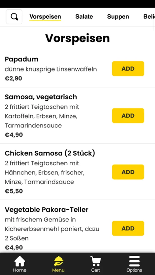 - Durchsuchen Sie die Speisekarte des Restaurants und sehen Sie sich alle anpassbaren Optionen im Voraus an