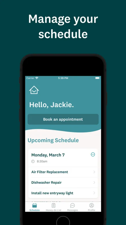 Use the Honey Homes app to easily update your to-do list, book an appointment, and message us anytime. You can: