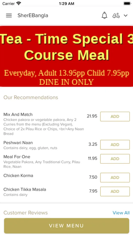 Thank you for visiting SherEBangla in Montrose. We hope you enjoy our online ordering app and your food.