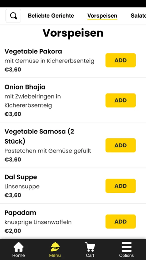 - Durchsuchen Sie die Speisekarte des Restaurants und sehen Sie sich alle anpassbaren Optionen im Voraus an