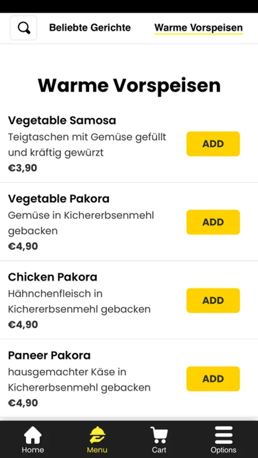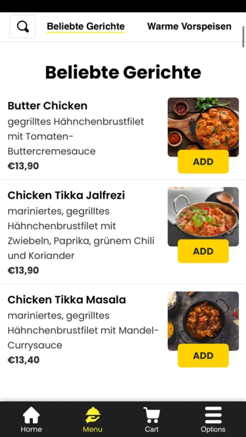 - Durchsuchen Sie die Speisekarte des Restaurants und sehen Sie sich alle anpassbaren Optionen im Voraus an