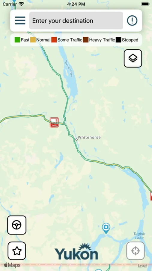 The 511 Yukon mobile app provides real-time road and traffic information to Yukon drivers. Construction, congestion, and other delays are centrally monitored by the many cameras, sensors, and other data available to the Government of Yukon. Our 511YT app will help you plan your route, anticipate delays, and get where you're going faster.