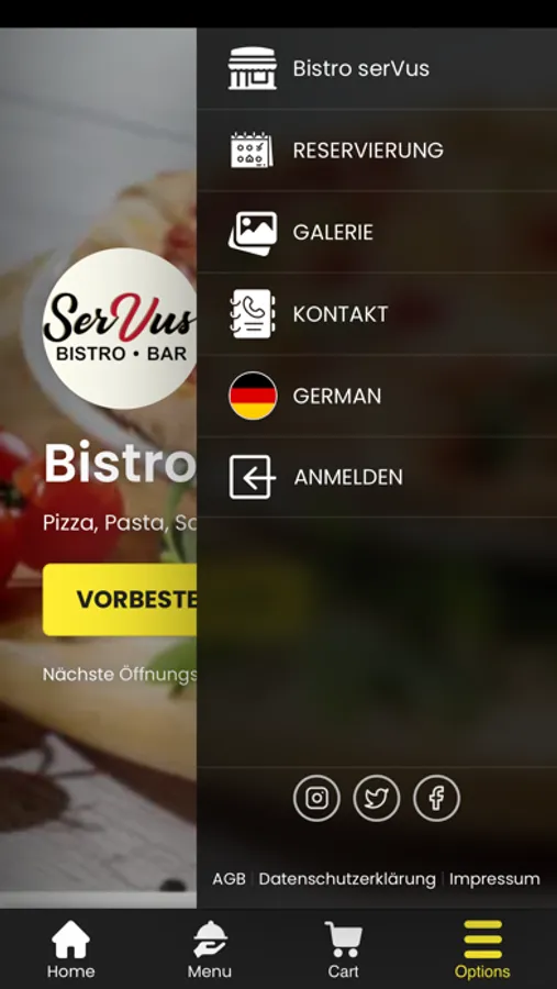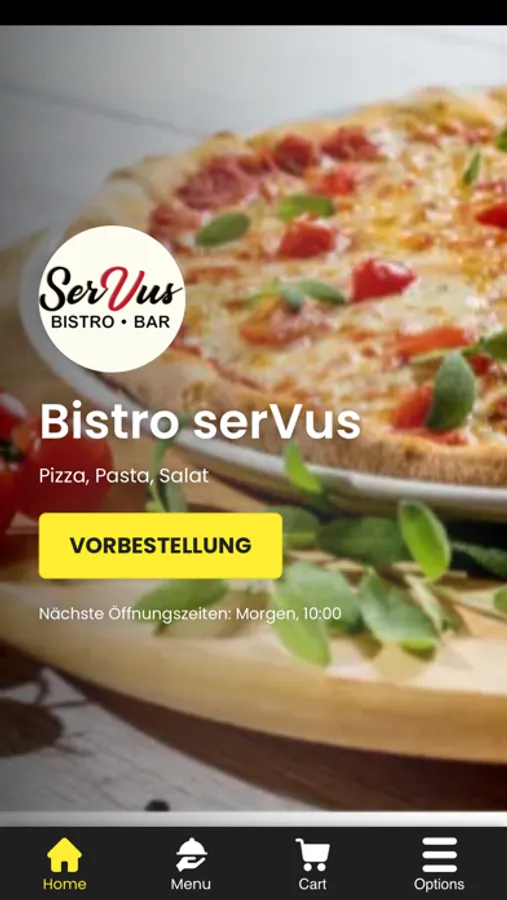Mit der Bistro serVus Mobile App können Sie Ihre Pizza, Pasta, Salat bequem von zu Hause aus genießen. Stöbern Sie in unserer Speisekarte, wählen Sie die Gerichte aus, die Ihnen schmecken, und geben Sie Ihre Bestellung in Sekundenschnelle auf.
