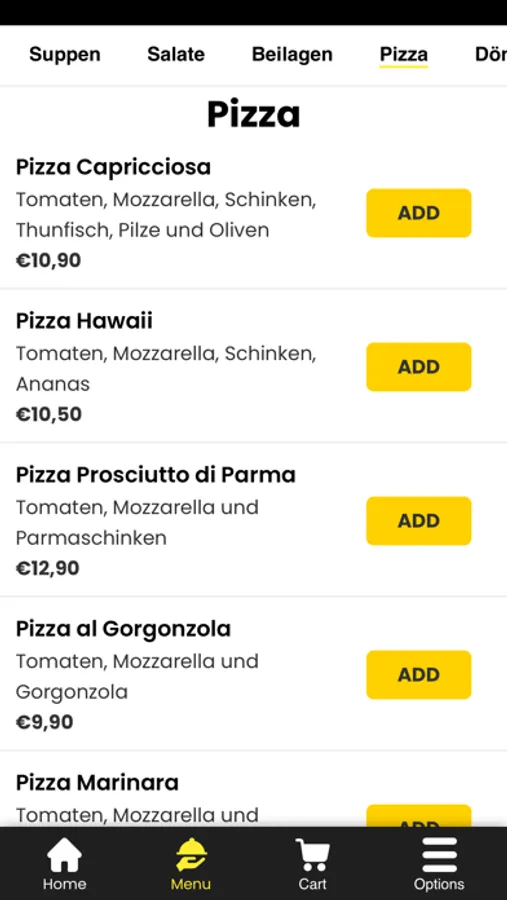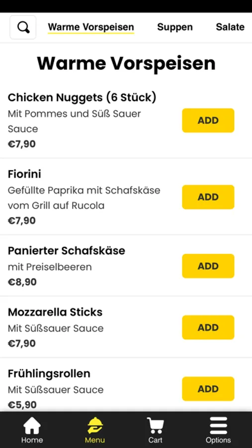 - Durchsuchen Sie die Speisekarte des Restaurants und sehen Sie sich alle anpassbaren Optionen im Voraus an