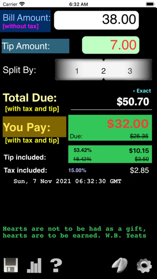 What makes this app stand out among apps bearing similar names is the functionality packed in it. It is surely far more than a tip calculator. Besides, it is still under active developments. Some of the requests that might be implemented in future versions include: use geo-location to detect restaurants nearly, budget management for weekly/monthly bills, etc.