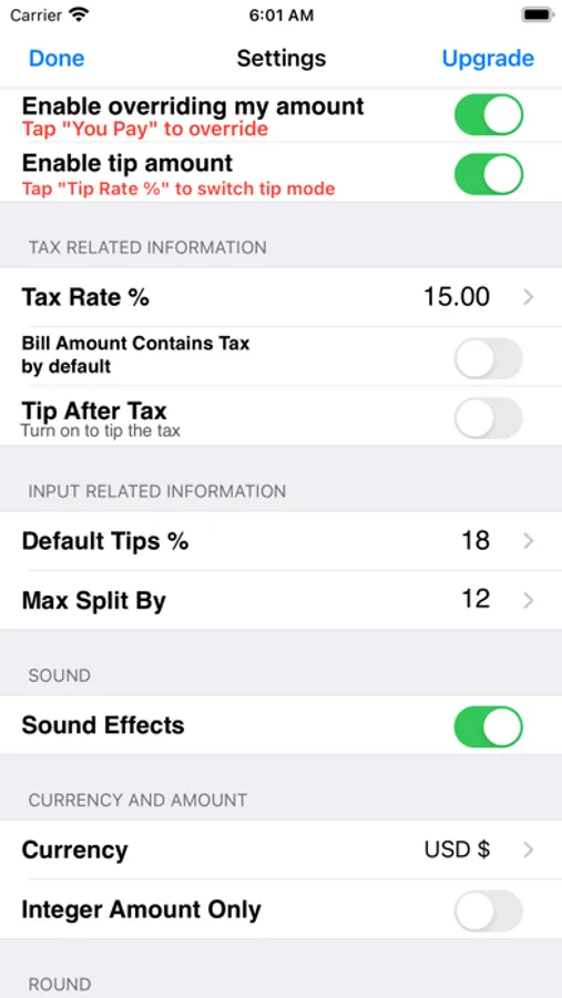 4. The calculated tips amount and due amount can be rounded according to your settings;