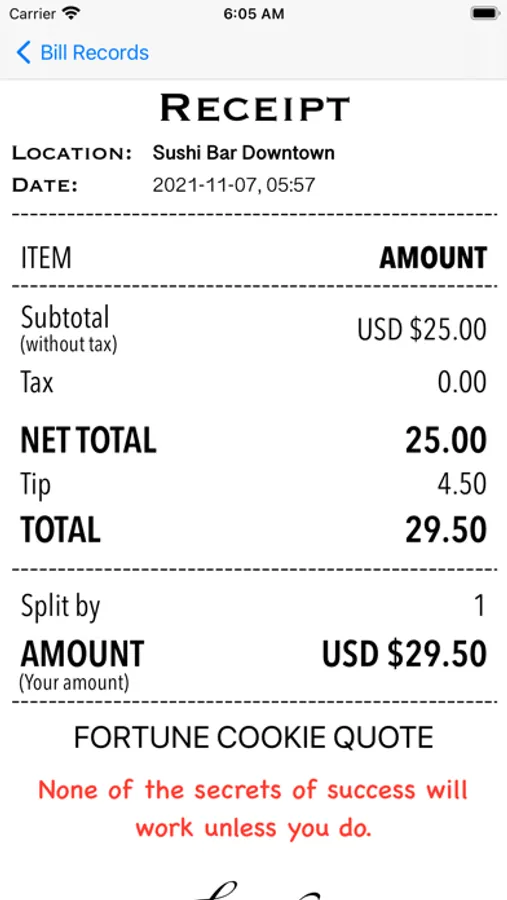 8. Bill amount can be recorded. And each record can be displayed like a real-life receipt;