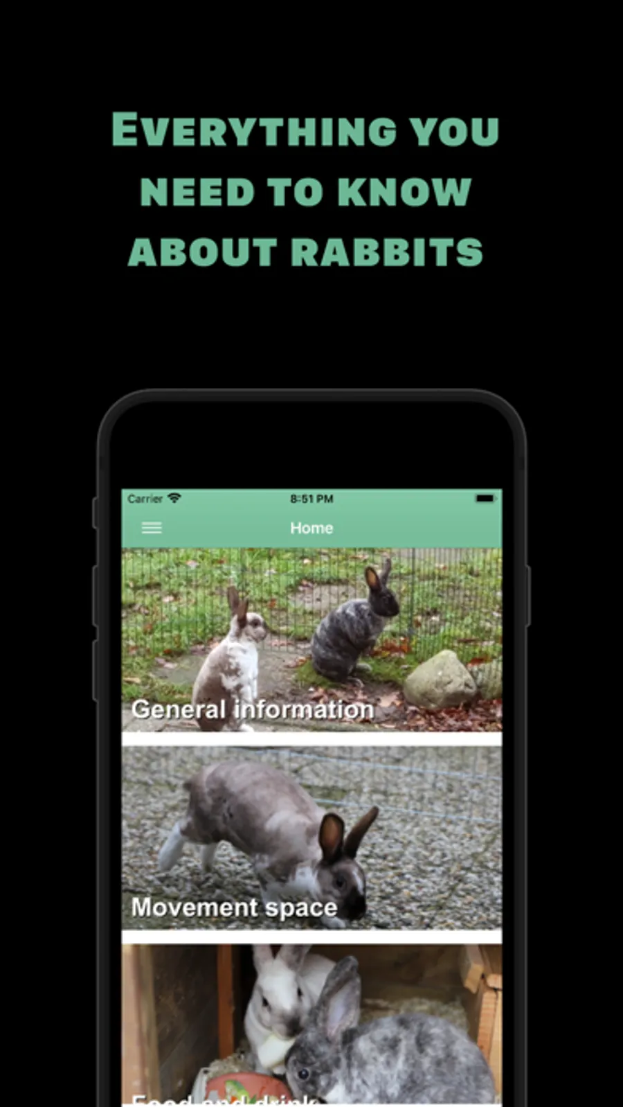 Everything you need to know about rabbits. Keeping rabbits as pets can be hard if you dont know what to do. In this app you have everything you need to know.