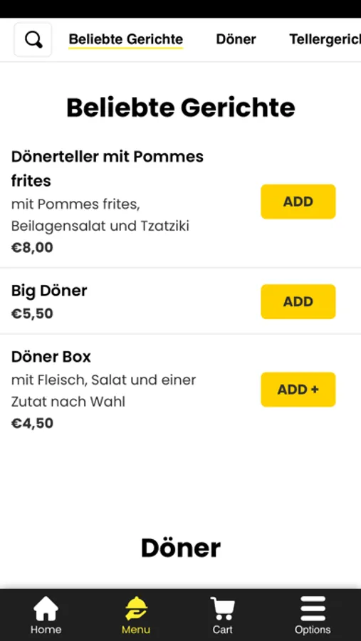 - Durchsuchen Sie die Speisekarte des Restaurants und sehen Sie sich alle anpassbaren Optionen im Voraus an